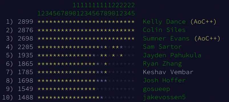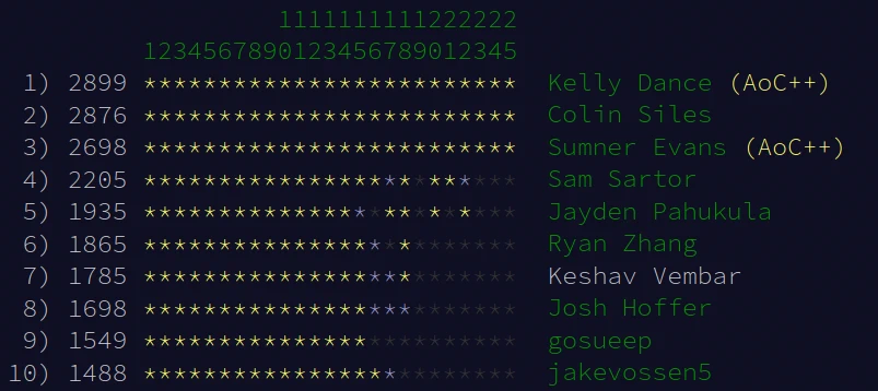 On the Mines leaderboard I got 2nd on part 1 behind Kelly (1*, 1**). On part