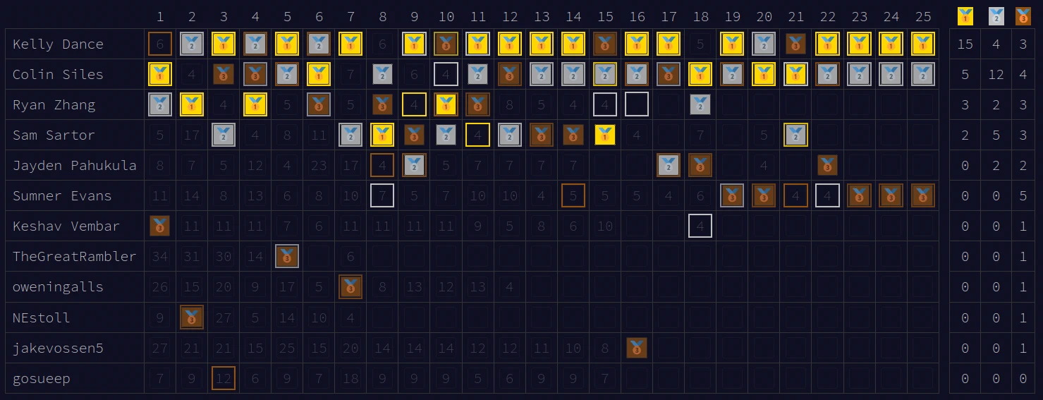 better than 3rd on part 2 on any day which is absolutely abysmal. Ryan, Sam, and
