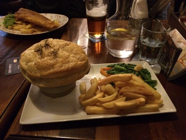 We then walked into the centre of town and had lunch at an English pub. I had a chicken and mushroom pie. It was served in a bowl and there was a huge puffy top. I actually took a picture of it, so here it is.
