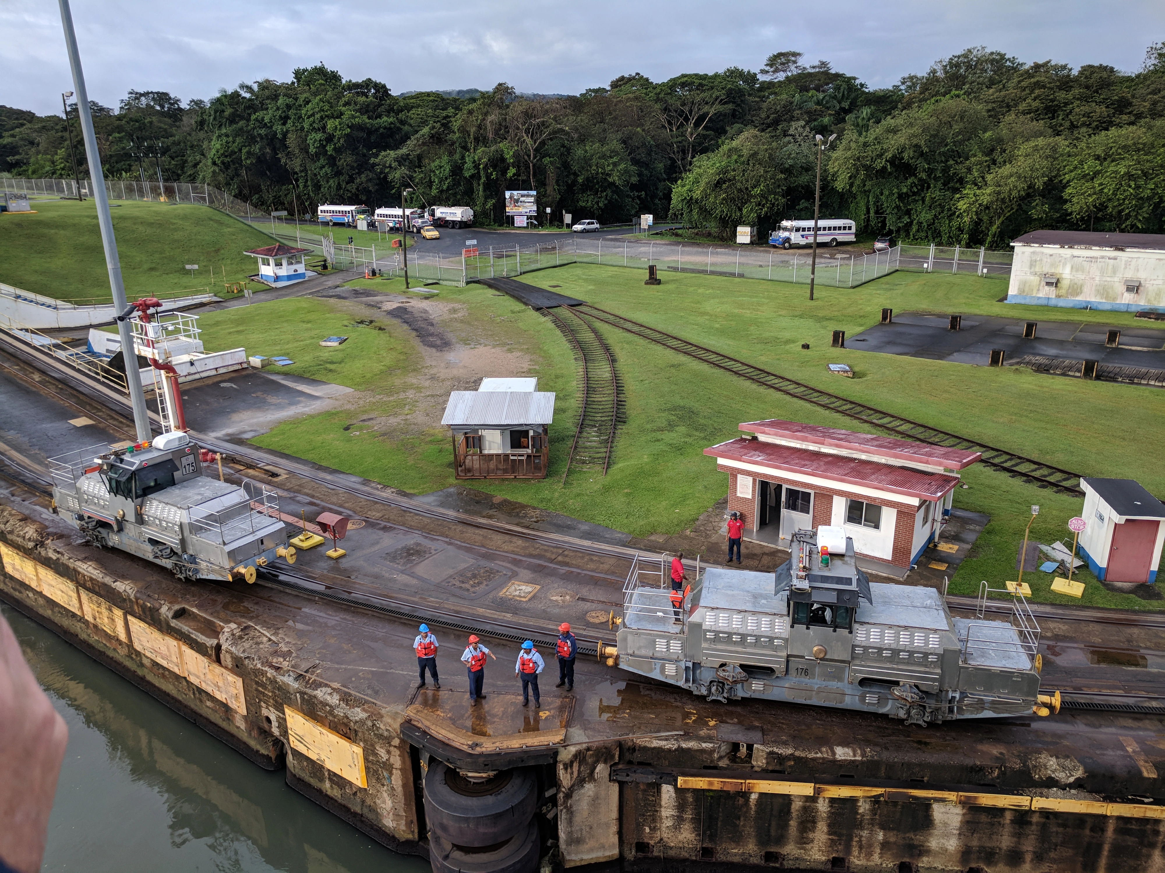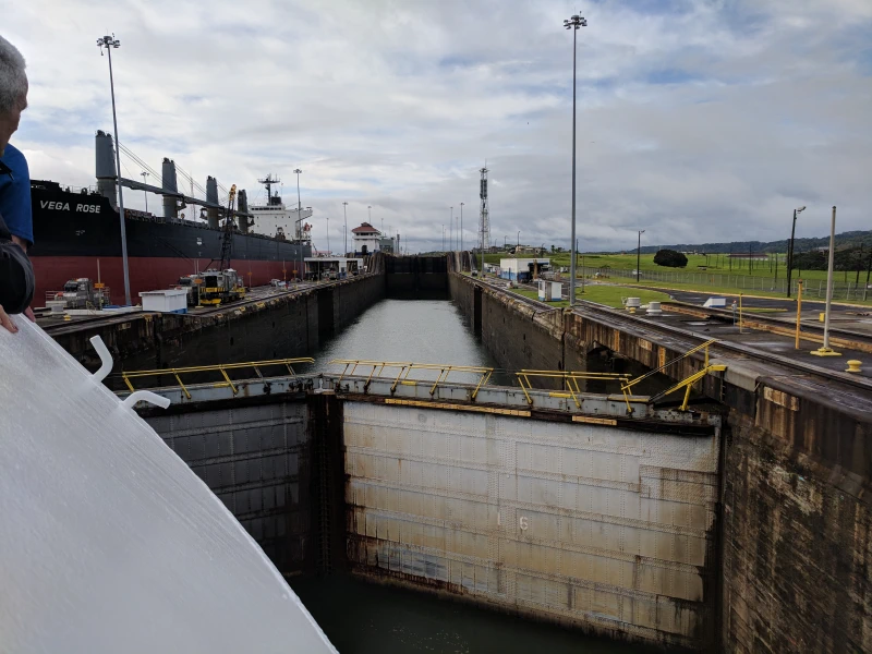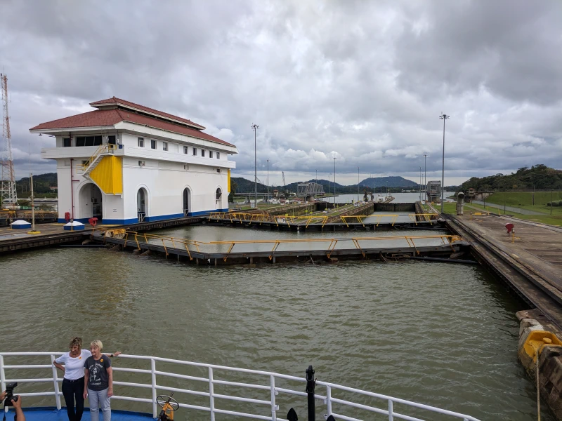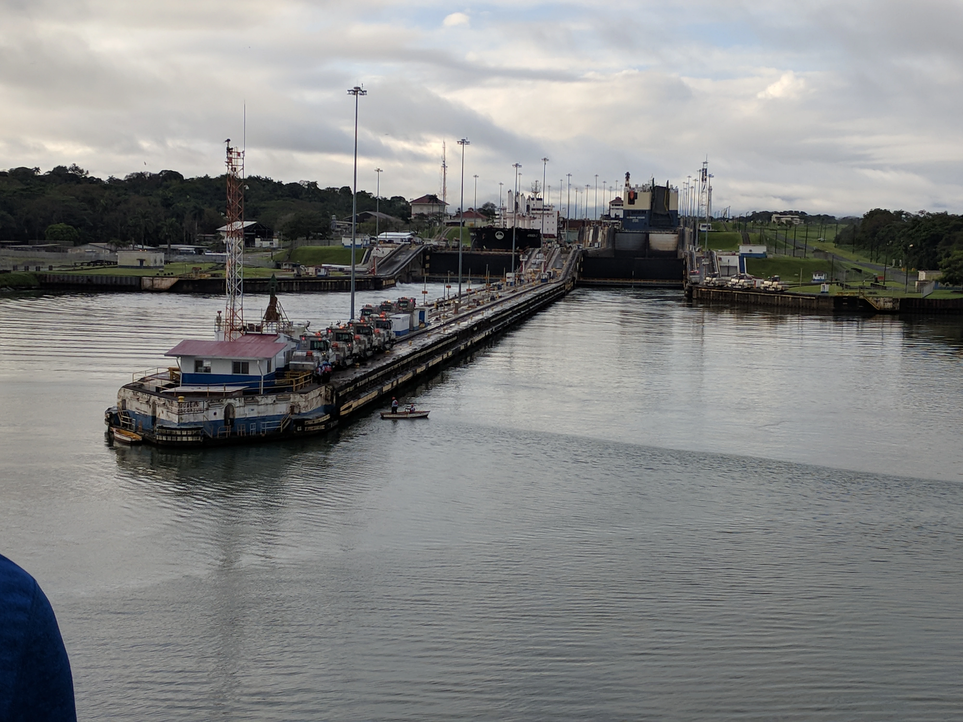 Our boat arrived at the Atlantic side of the canal at about 07:00. They opened the bow for people to go outside and watch the transit. We got a pretty good place at the front of the boat.