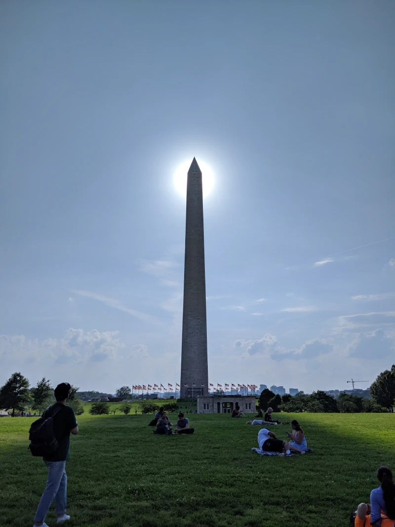 We stayed at the museum until close. We stopped and got food from the food trucks which lined the street in front of the Washington Monument. We sat in the shade of the Washington Monument as we ate.