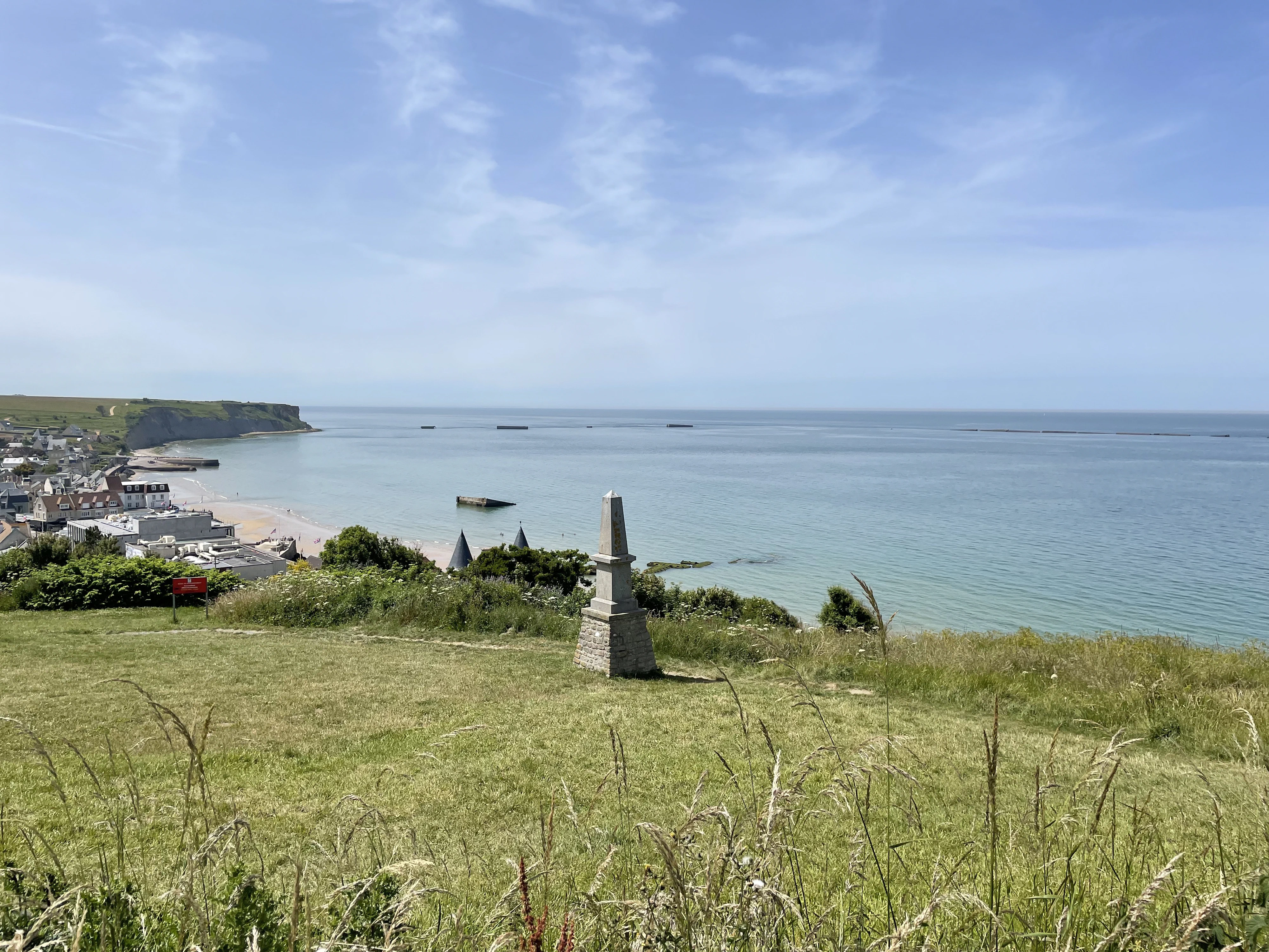 We watched a film with footage from the day of the battle, but there were two other things that I found most compelling. First, from the heights above the beach you can still see to this day the remnants of the temporary port that the engineers built to allow the allies to offload materiel from larger vessels before the capture of already-established deep water ports.