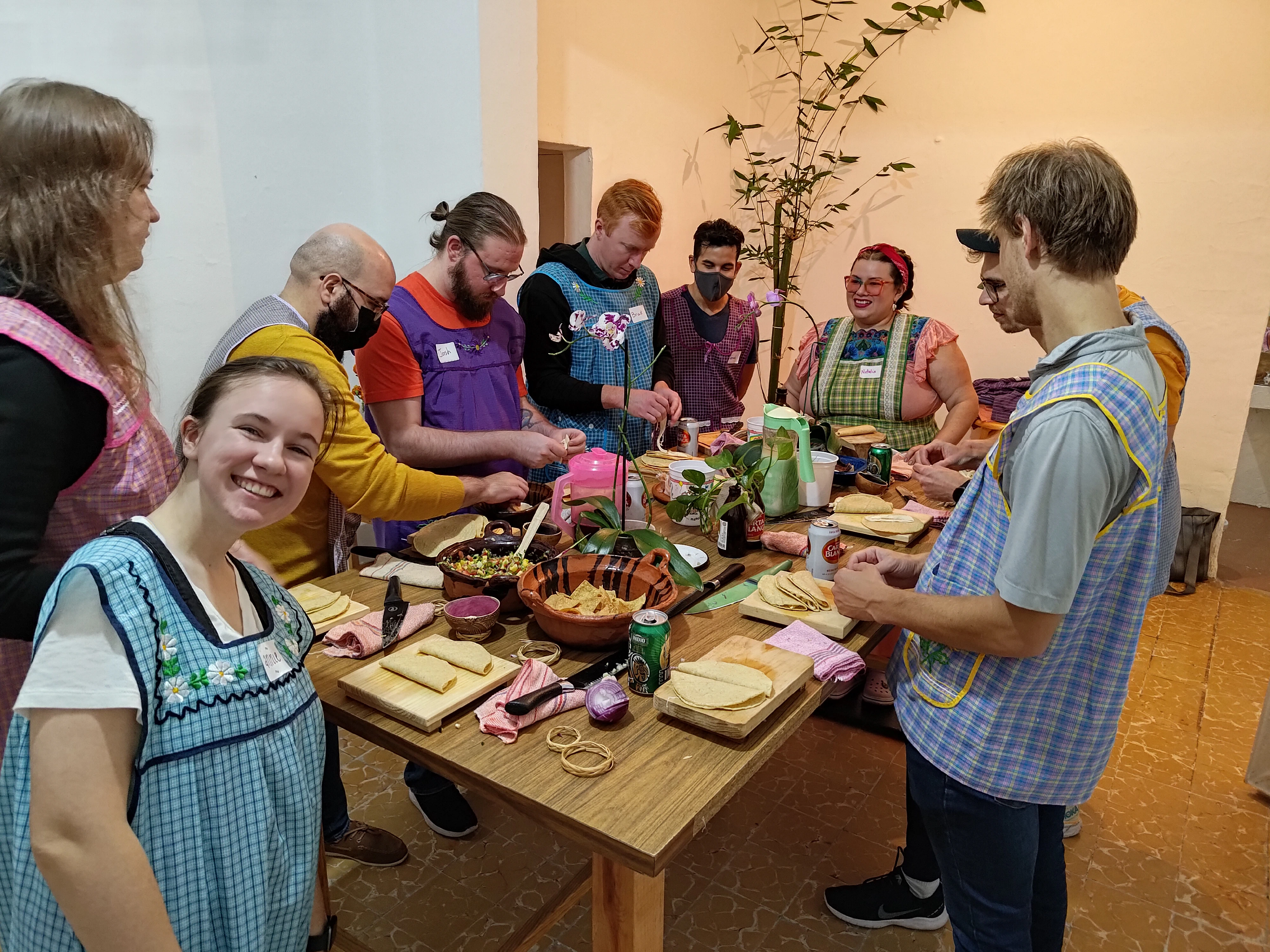 On Tuesday, we went to a salsa cooking class. The class was hosted in a historic district of Mexico City by local culinary instructors. We fixed four delicious salsas: a pico de gallo, a chilli oil salsa, a creamy tomato-based salsa, and a roasted salsa. The salsas were all “table salsas” meaning that they are traditionally served at the table to add flavour to the dish. These salsas tend to be spicier than the other type of salsa which is a “cooking salsa”. Such salsas are used in the dishes themselves while being cooked.