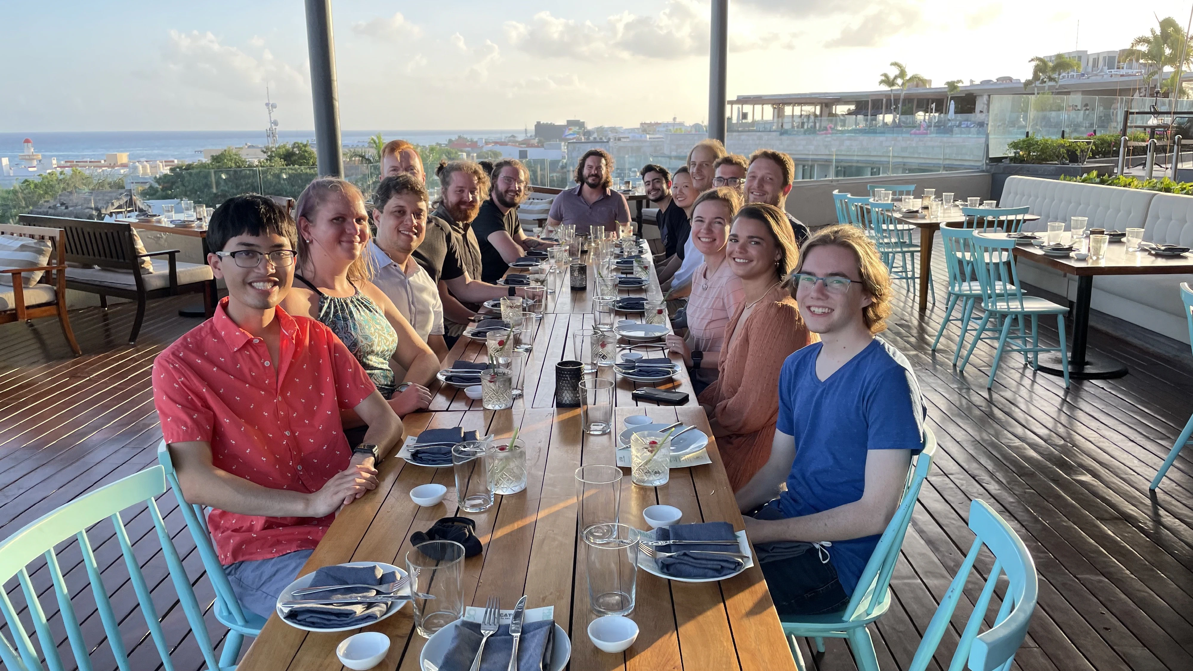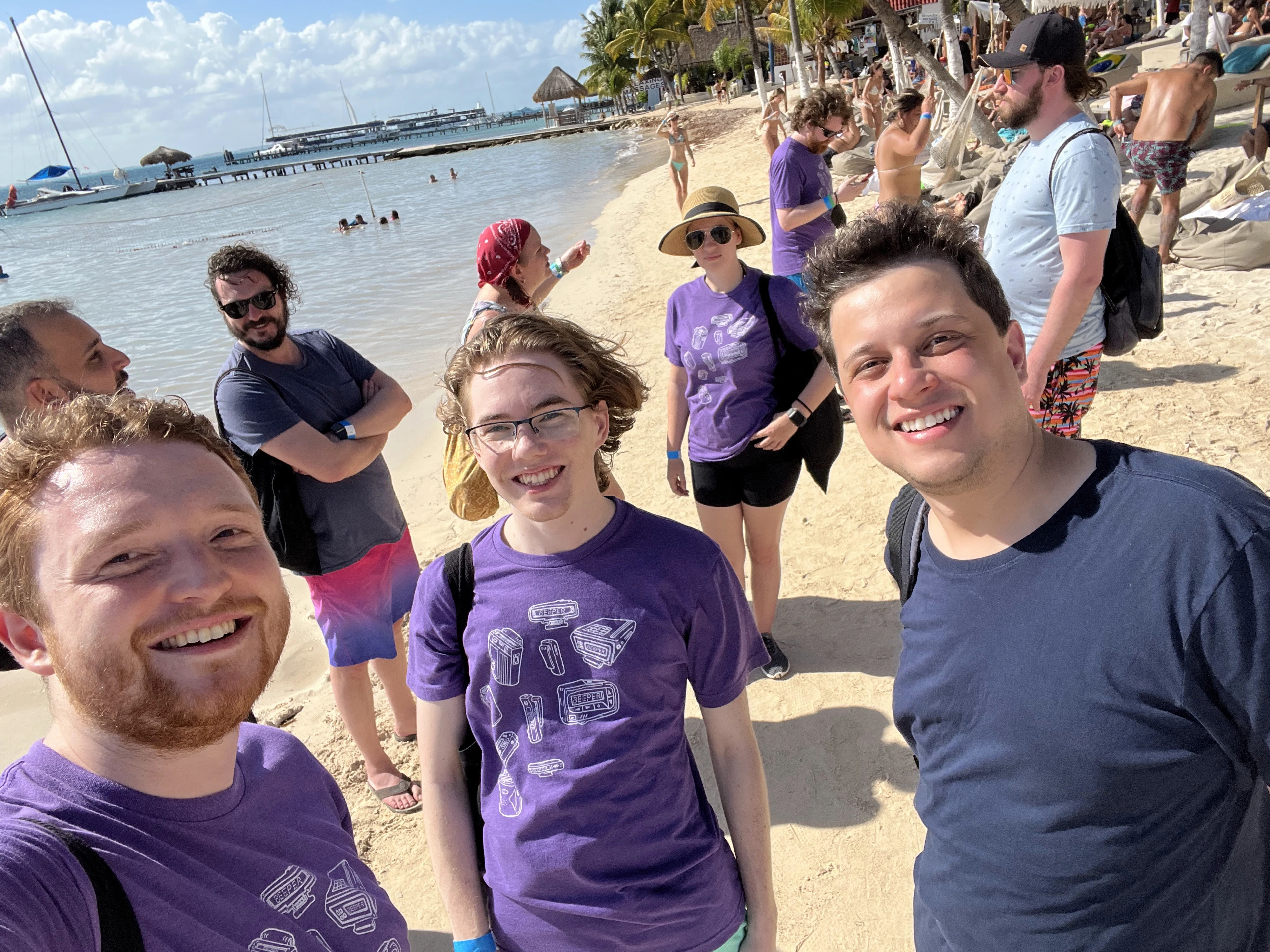 Enjoying the beautiful water off the coast of Isla Mujeres with the best team in tech Left to right: foreground: Gerardo, Eric R., Scott, Annie, Eric M., Ian, Tiago; background: Josh, Brad, Bradley, me, Kilian, Finn, Michelle, Sarah, Wellington. | |