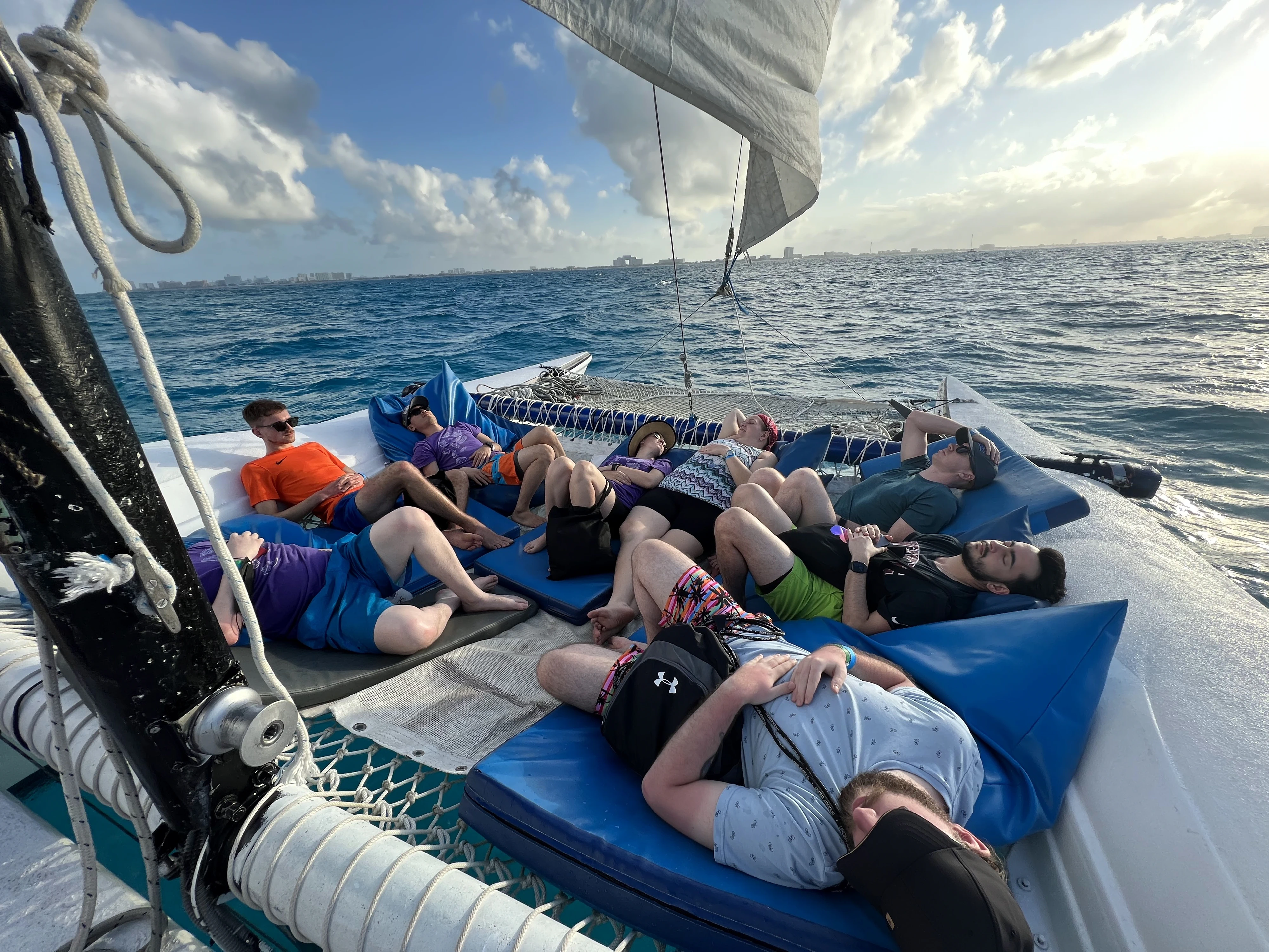 Great views of the Gulf of Mexico from the eastern of Isla Mujeres | The team relaxing after a hard day of work The ride back to Cancun was beautiful and very relaxing. Maybe a bit too relaxing :) |