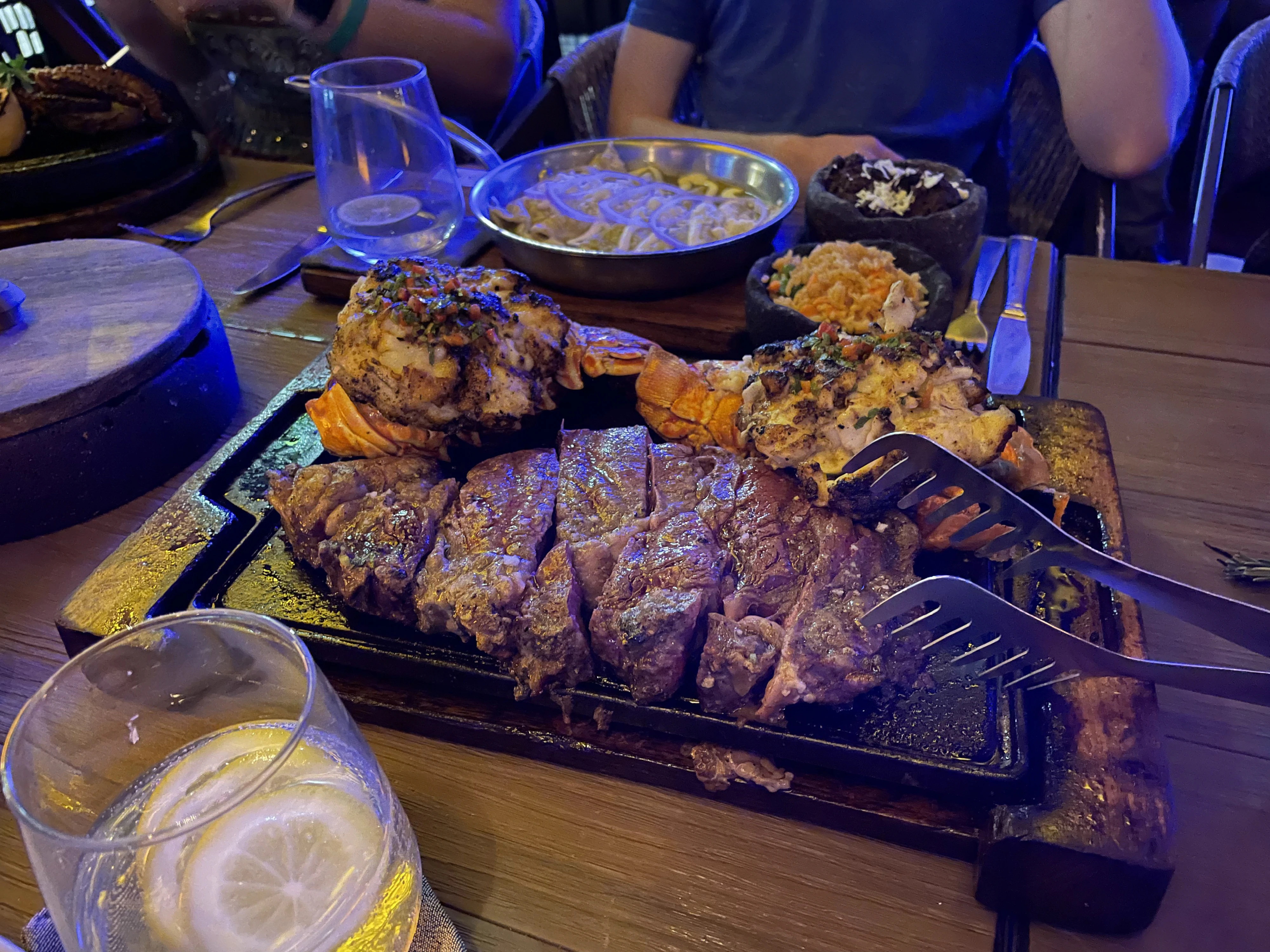 On Tuesday evening, we went to Porfirio’s in downtown Playa del Carmen. I ended up at a table with Josh, Bradley, Brad, Finn, Sarah, Ian and Kilian. We enjoyed a selection of appetisers, and a few rounds of drinks. But the highlight was the Surf & Turf. Our waiter mentioned that Surf & Turf for four was the special that evening, and Brad (CTO) asked if anyone wanted to join him for that. Bradley and myself agreed, and the food was finished table-side in a very cool show by the waiter.