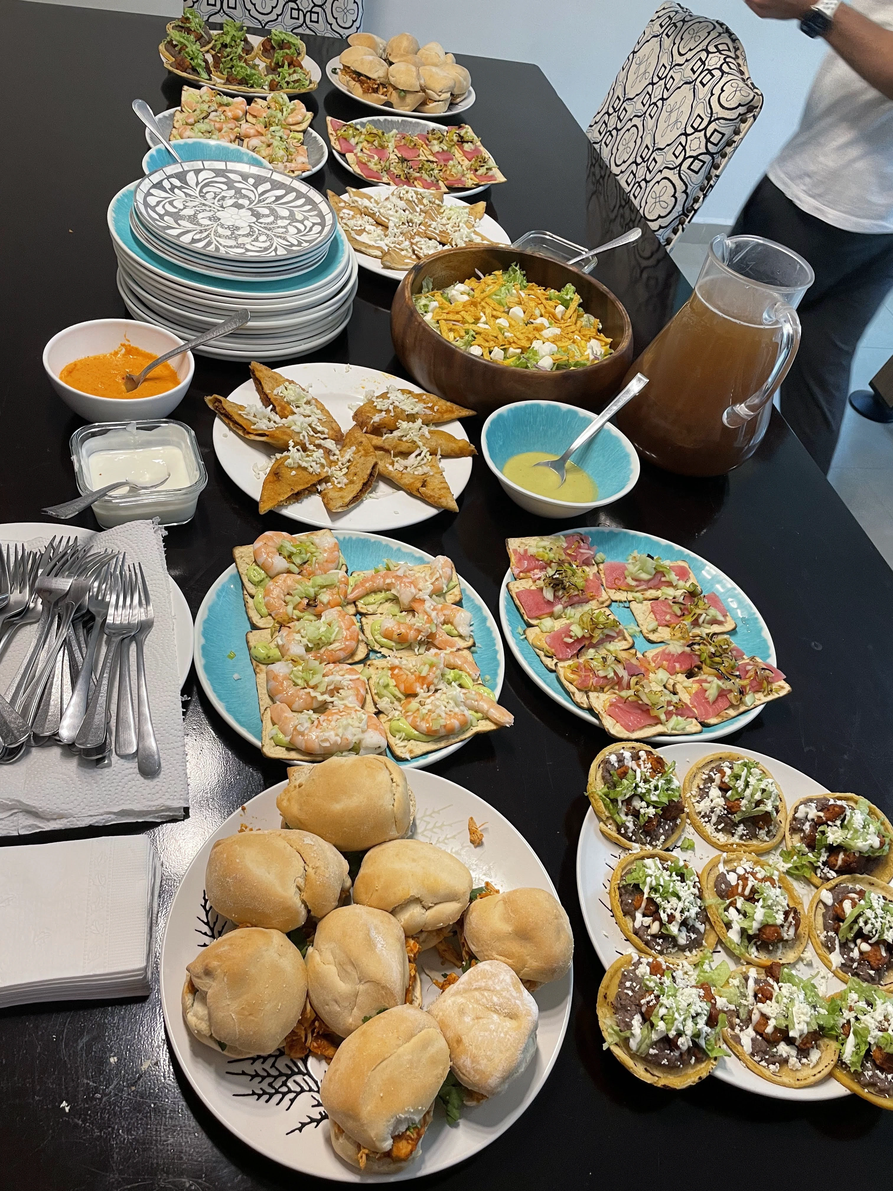 Every meal (except two dinners and one lunch) was prepared by private chefs who came to the Airbnb and fixed food for us. Every meal was amazing. All of the meals featured Mexican cuisine, and were delicious. They laid out the meals family style on the large dining table, and we enjoyed the food immensely.