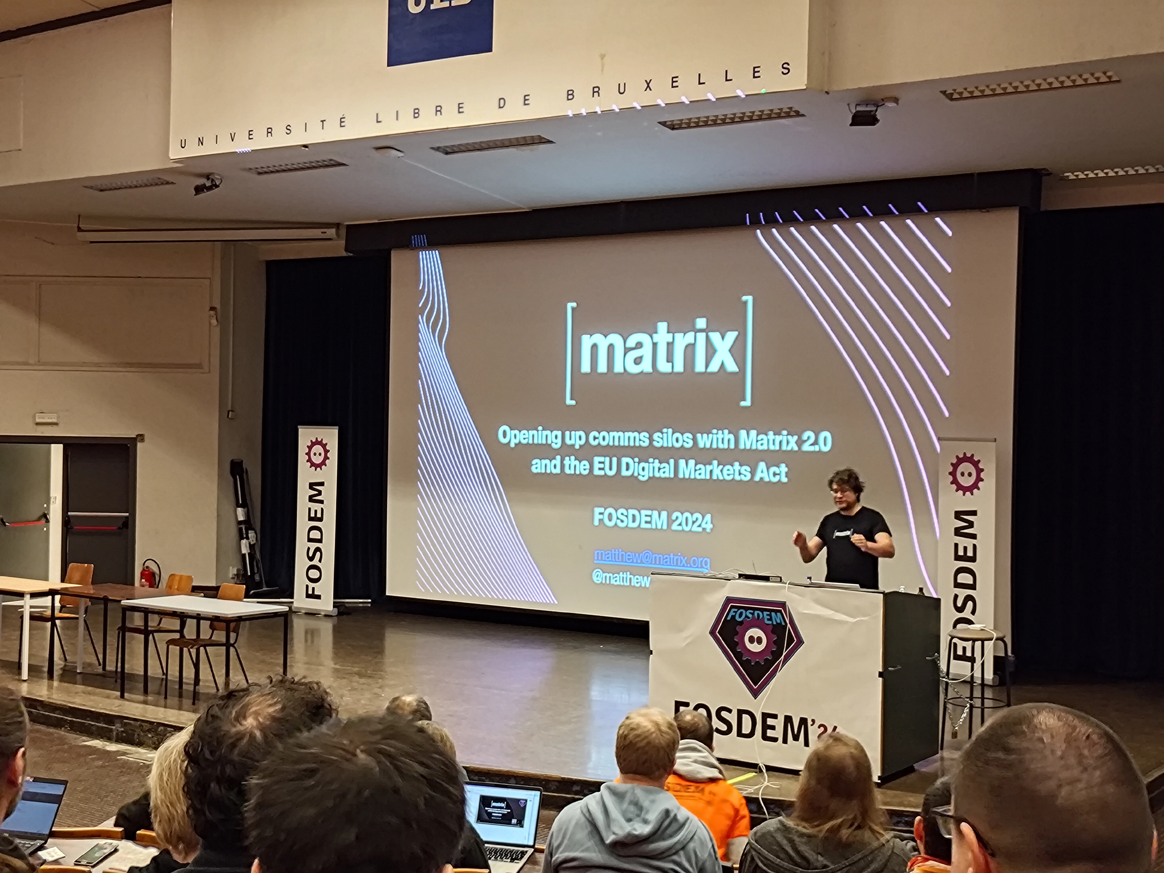 On Sunday morning, Matthew gave a keynote about the state of Matrix on the FOSDEM main stage. He provided an update on the Matrix Foundation and the progress that the ecosystem has made over the past year.
